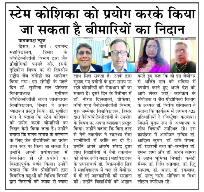 Two days Web symposium organised by Biotechnology technology